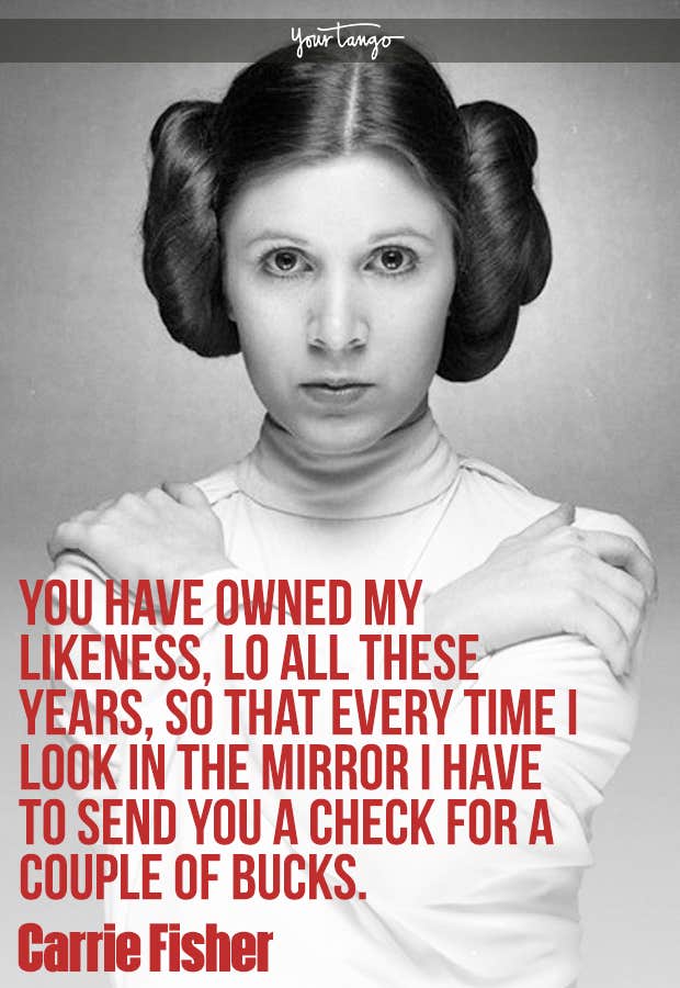 "You have owned my likeness, lo all these years, so that every time I look in the mirror I have to send you a check for a couple of bucks." — Carrie Fisher