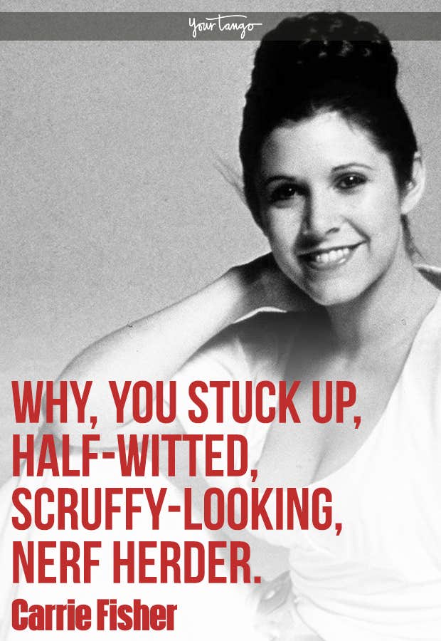 Why, you stuck up, half-witted, scruffy-looking, Nerf herder."— Carrie Fisher (as Princess Leia)