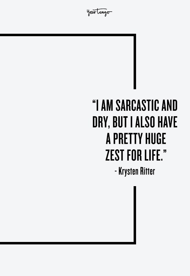 “I am sarcastic and dry, but I also have a pretty huge zest for life.” —Krysten Ritter