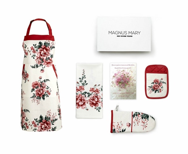 This kitchen set comes with everything your darling mom could need. The apron, oven mitt, kitchen towel and pot holder all come with a beautiful floral design. It's crafted out of cotton and will help your mom feel cozy in the kitchen.You can get this gorgeous kitchen set here.