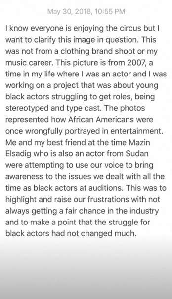 Since then, Drake has responded — not addressing the claims made in “The Story of Adidon,” but to point out that the black face photo of him was “taken out of context.” He posted an Instagram story, explaining that the picture was meant to represent the challenges black Americans face in Hollywood, and was taken in 2007 by photographer David Leyes: