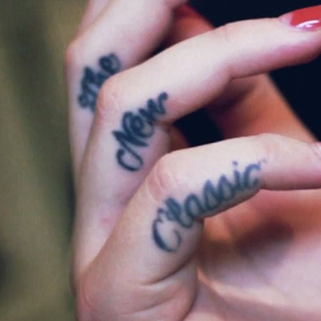 Iggy's first album under a major label is titled "The New Classic." She has this tatted on her right hand on her middle, ring, and pinkie fingers. According Popstar Tats, Iggy said about her album name, "I think people think of classic and they think of a Nas record or a Jay-Z record or The Chronic; what makes something classic is when you hear it and have that moment that is a time capsule." However, she explained her meaning is different. "When I say 'The New Classic,' I just want to make records that give you that moment for fans that they can remember where they were when they heard it."