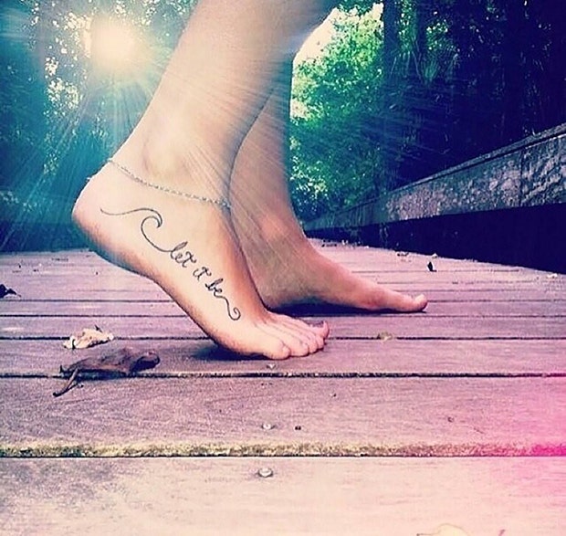 Sometimes we all need a reminder to let go of the negativity and to embrace the positive things in life and go with the flow. This is the perfect tattoo to keep things in perspective for you. With the words “Let it be” seeming to ride a wave across your foot, you’re sure to be able to put things in perspective (at least for the 2-5 days this tattoo decorates your foot).