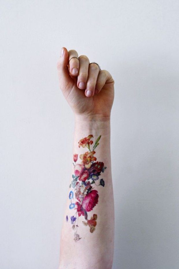 8. “Painted” Floral Temporary Tattoo