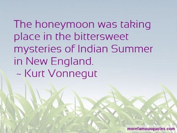 "The honeymoon was taking place in the bittersweet mysteries of Indian summer in New England" -Kurt Vonnegut