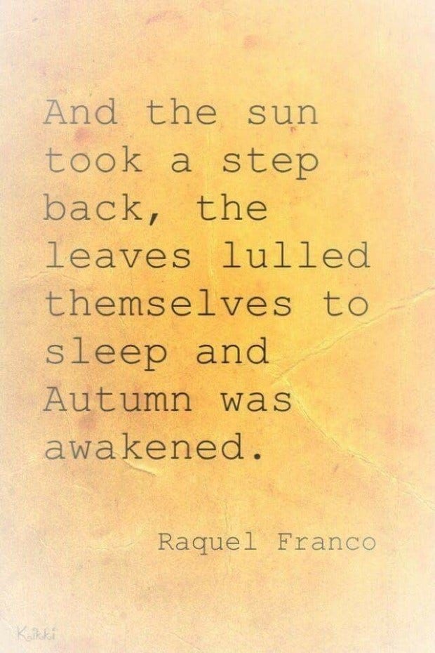 "And the sun took a step back, the leaves lulled themselves to sleep and Autumn was awakened." -Raquel Franco
