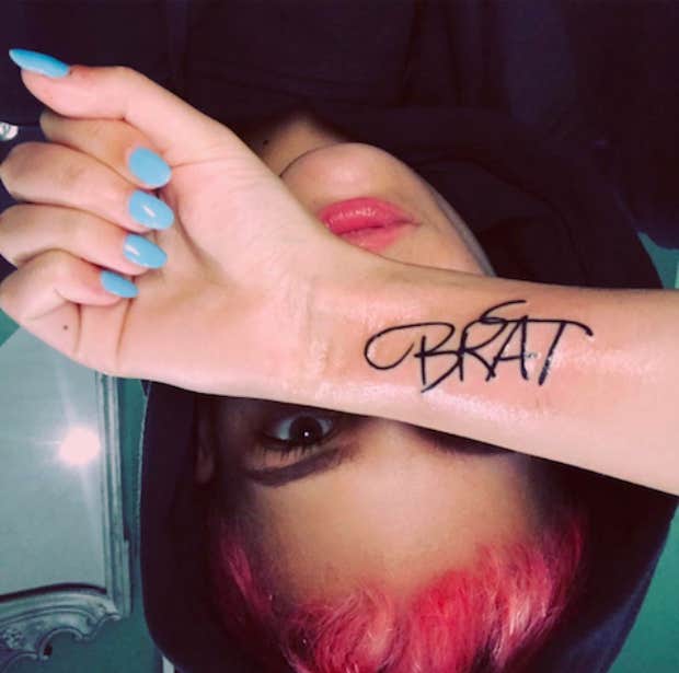 The message behind this tat is pretty straight-forward. As many children, Halsey was lovingly nicknamed "Brat" when she was young, so she decided to get it inked in honor of her parents.