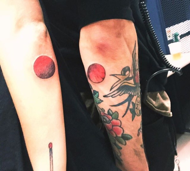 Halsey got another set of matching tattoos with a new friend she made during Warped Tour! According to Romper, Halsey stated, "I got Mars because I met a guy on tour that I became really good friends with, and his birthday is on my half birthday, and I'm a Libra. So my ruling planet is Venus, and his ruling planet is Mars, which are also opposites. So it's like opposite birthdays, opposite signs, technically opposite personalities in astrology, but complete opposites, and we were really good friends. So I got Mars, and he got Venus. We got each other's planets."