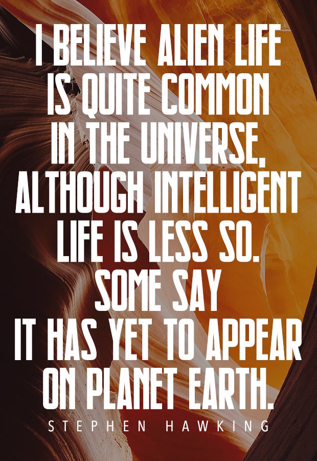 "I believe alien life is quite common in the universe, although intelligent life is less so. Some say it has yet to appear on planet Earth."— Stephen Hawking