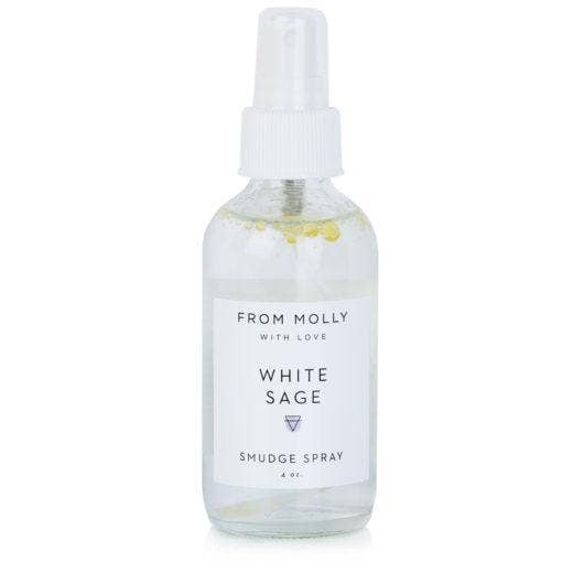 This white sage smudge spray is exactly that: smudging in liquid form! Delicious rose and lemon essential oils increase the energy of sage, known for its incredible psychic cleansing clearing properties. This magical sage spray can turn any space into a sacred haven because we charge it with the power of quartz crystal-infused water and pink Himalayan sea salt.
