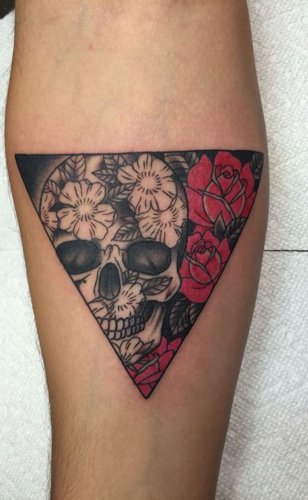 28. This one features the sugar skull inside of a triangle tattoo.