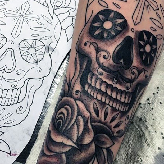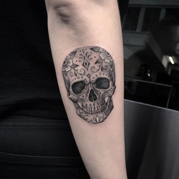 Although this sugar skull tattoo doesn't have an excess amount of detail, its message is clear.