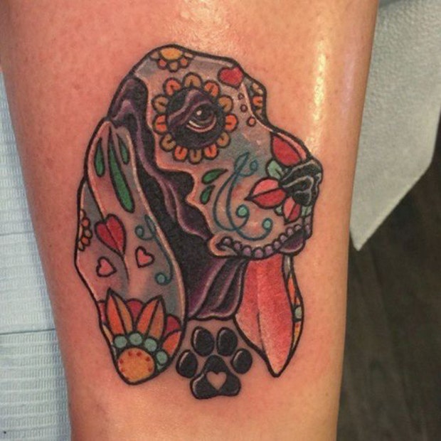 If you've lost a special pup in your life, honor his memory by getting a sugar skull portrait tattoo.