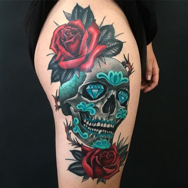 11. Incorporating roses into your skull tattoo adds some extra flair.