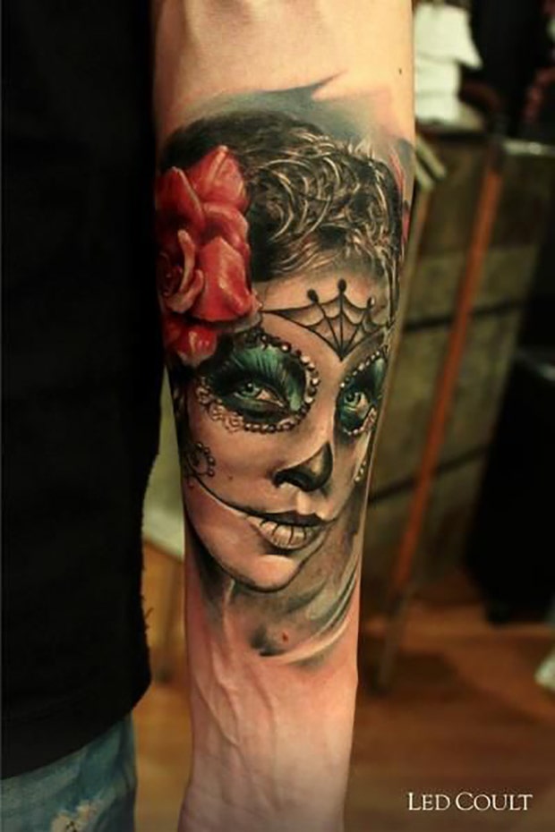 Want a sugar skull tattoo but don't want it to seem too feminine? Give it facial hair!