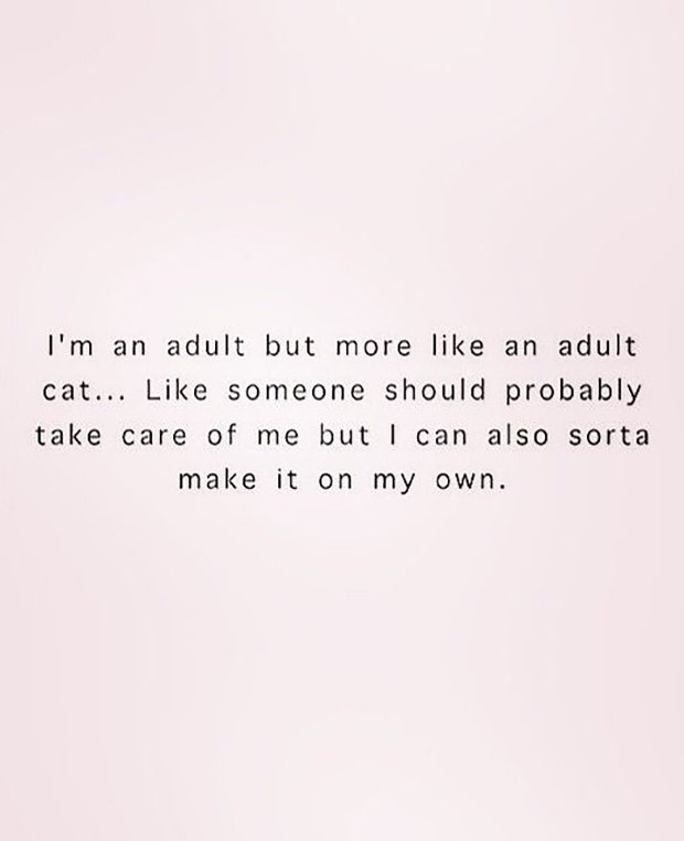 "I'm an adult but more like an adult cat...like someone should probably take care of me but I can also sorta make it on my own." — unknown