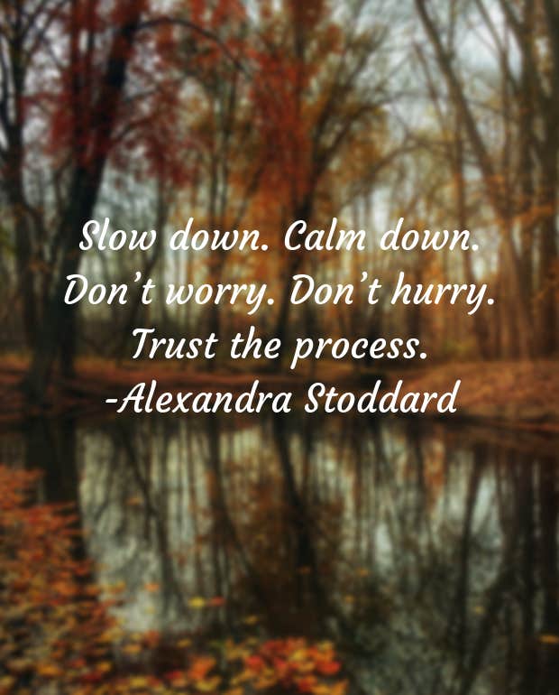 Slow down. Calm down. Don’t worry. Don’t hurry. Trust the process. -Alexandra Stoddard