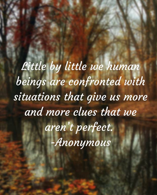 Little by little we human beings are confronted with situations that give us more and more clues that we aren’t perfect. -Anonymous