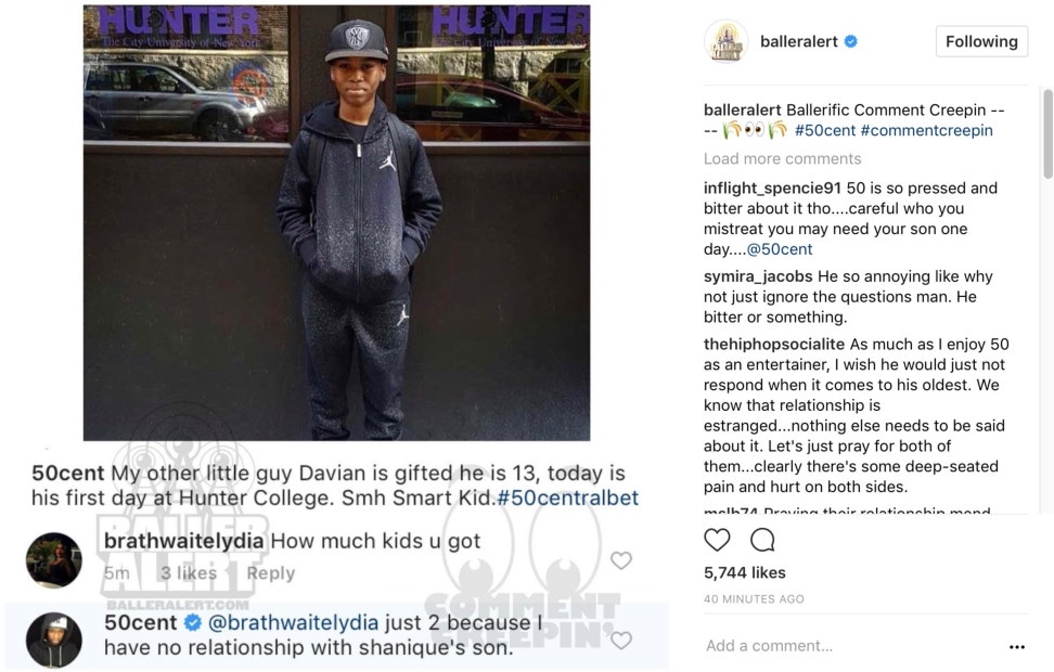 The 20-year-old also revealed that 50 Cent blocked him on Instagram.