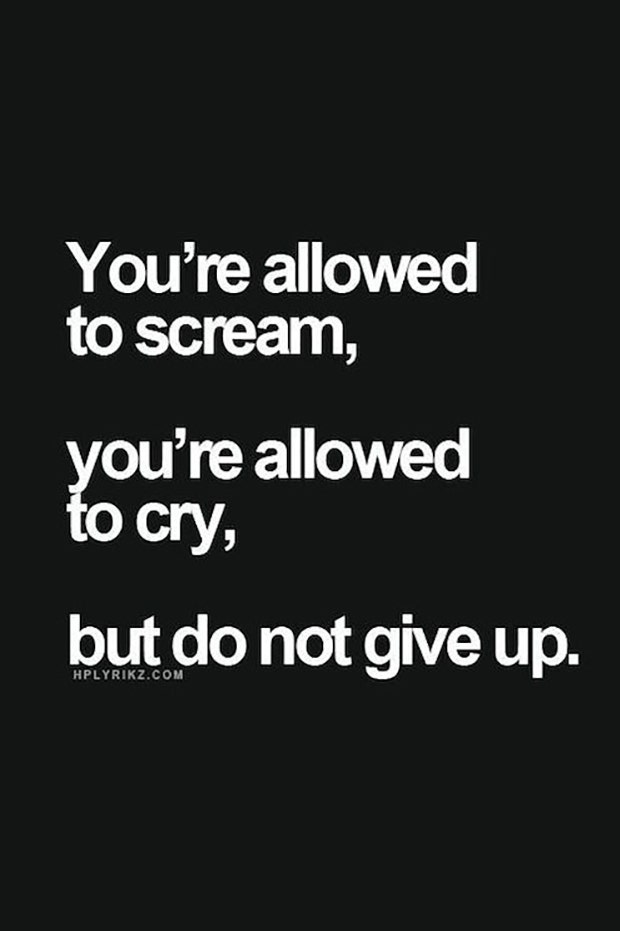 "You're allowed to scream, you're allowed to cry, but do not gie up."—Unknown