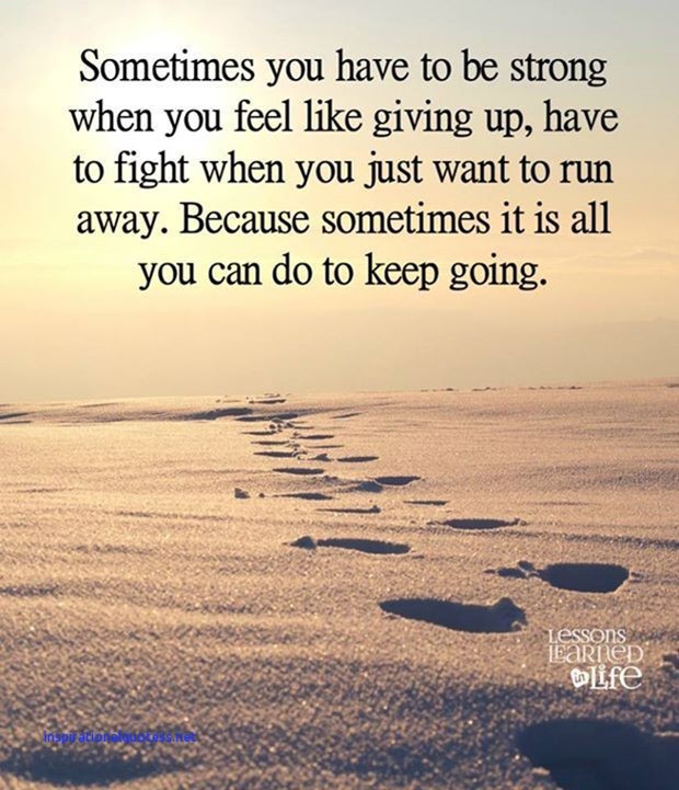 "Sometimes you have to be strong when you feel like giving up, have to fight when you just want to run away. Because sometimes it is all you can do to keep going."—Unknown