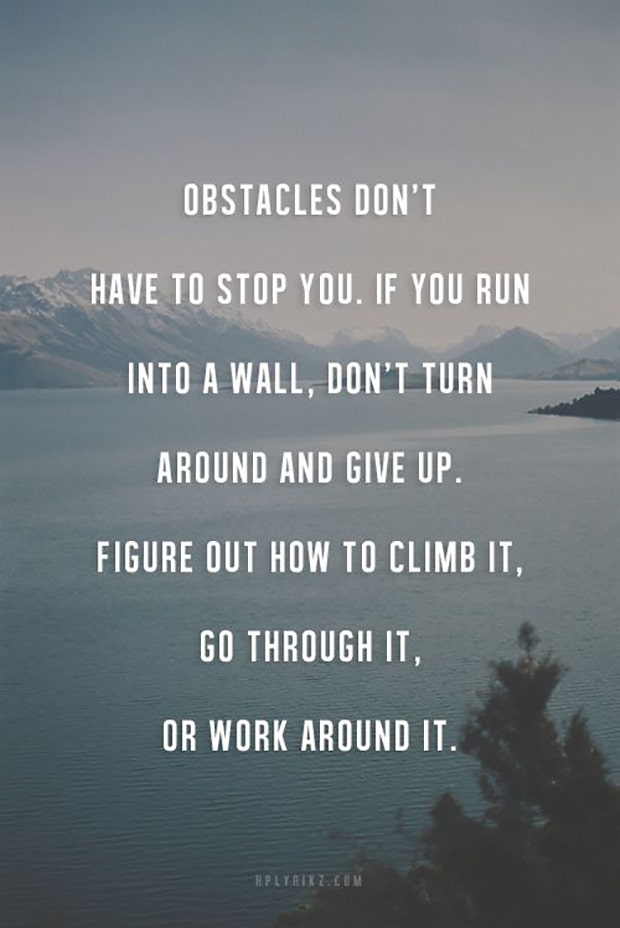 "Obstacles don't have to stop you. If you run into a wall don't turn around and give up. Figure out how to climb it, go through it, or work around it."—Unknown