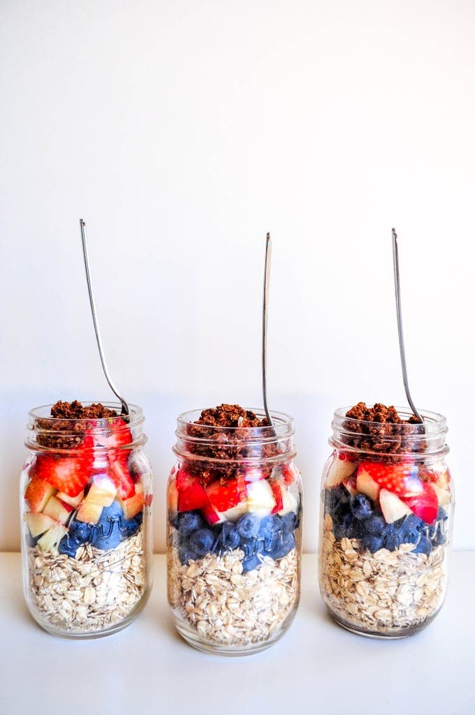 I just tossed all the ingredients into mason jars, and the night before eating one of them, I add almond milk and throw the jar in the fridge.