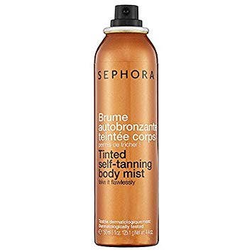 If foams and lotions aren't your thing, try Sephora's self-tanning mist. It's tinted so you can see where you're spraying — just take the advice and spritz in the shower so you don't accidentally hit your couch or your cat.