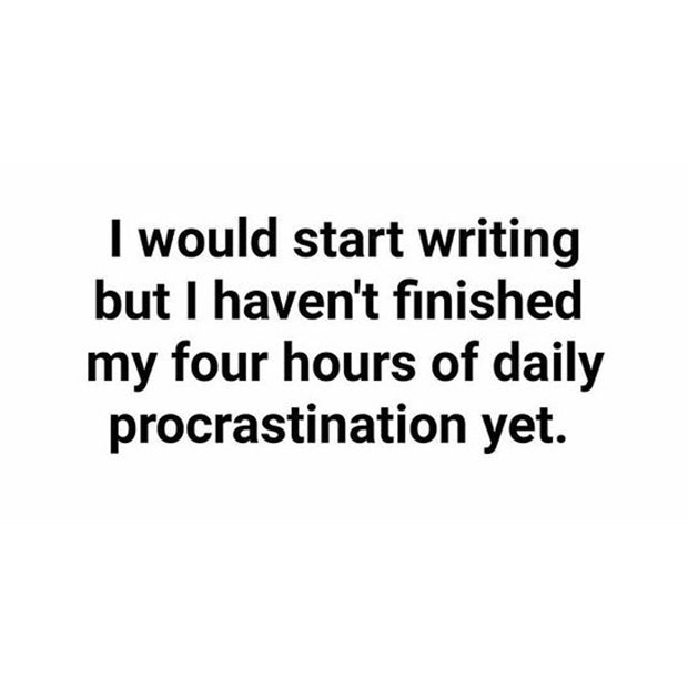 "I would start writing but I haven't finished my four hours of daily procrastination yet." - Unknown