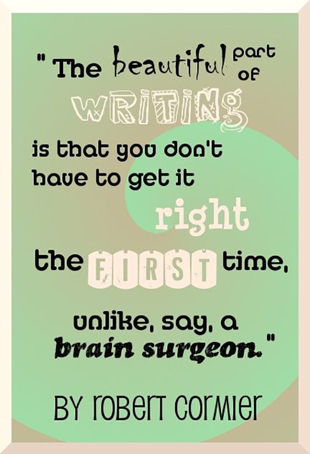 "The beautiful part about writing is that you don't have to get it right the first time, unlike, say, a brain surgeon." - Robert Cormier