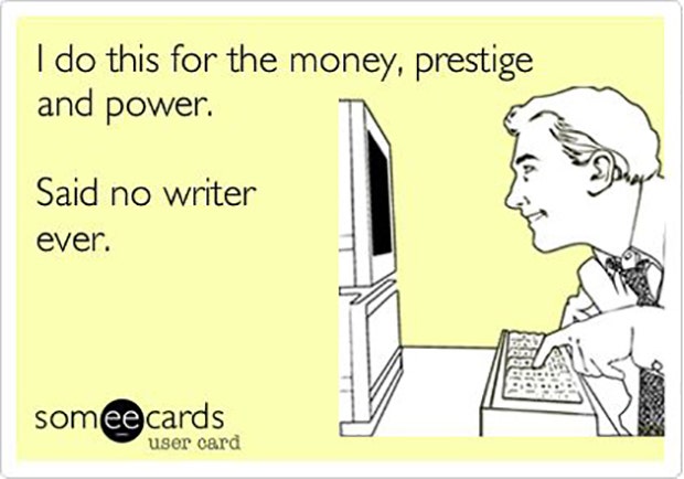 "I do this for the money, prestige and power. Said no writer ever." - Unknown