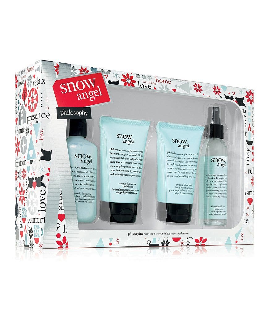 The delicate scent of snow angel evokes an icy evening dotted with crystalline stars and snowflakes. This collection includes four snow angel scented products. And you can even wrap it up for a fan of snow.