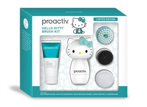 Hello Kitty fans of all ages can have fun with their skincare regimen with Proactiv’s latest collaboration with Sanrio, featuring pop icon Hello Kitty® in a themed brush kit with a cleansing brush head in the shape of our favorite character. The brush is designed to help clear away surface debris to keep pores from clogging.