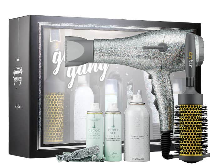 Glitter Gang is packed with every essential you need to create a beautiful blowout at home. This style-perfecting set includes the limited-edition Buttercup — Drybar’s signature blow-dryer, covered in a dramatic dose of glitter — as well as an amazing assortment of bestselling products to cleanse, style, finish and maintain your Drybar-inspired look.