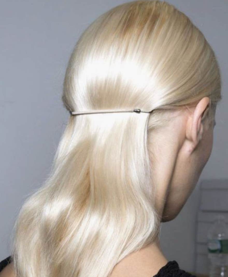 Gather up your hair and throw it into an upright pony tail. To achieve this look throw in an Invisibobble hair tie for added volume.