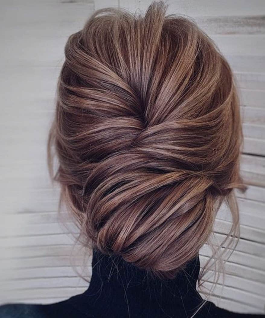The most elegant bun you've even seen. This definitely knocks your everyday top knot out of the park, and with just a few extra steps. Section off the top of your hair into two sections and wrap it over one another until you've created the above look. For added volume, be sure to throw in some volume powder before styling.
