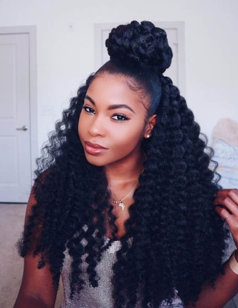 There are so many aspects of this style to talk about. The long hair. The curls. But this twisted crown is what has us swooning.
