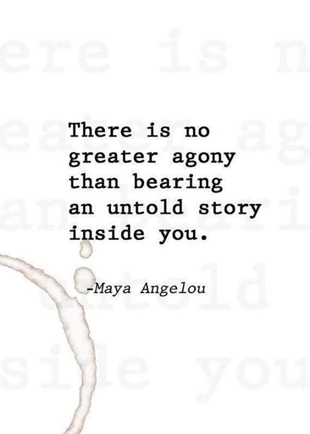 "There is no greater agony than bearing an untold story inside you."— Maya Angelou