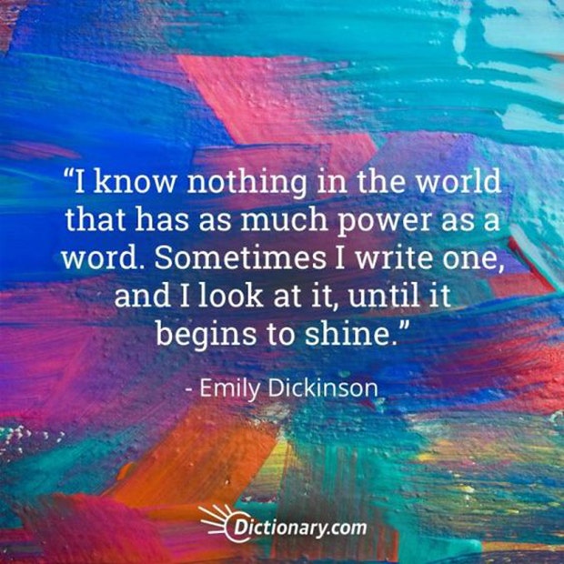 "I know nothing in the world that has as much power as a word. Sometimes I write one, and I at it, until it begins to shine." — Emily Dickinson