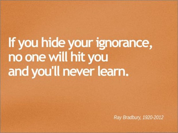 "If you hide your ignorance, no one will hit you and you'll never learn." — Ray Bradbury