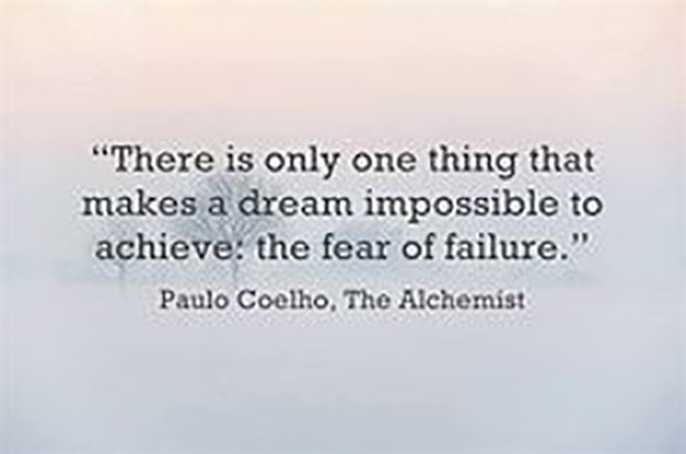 "There is only one thing that makes a dream impossible to achieve: the fear of failure."— Paulo Coelho, The Alchemist