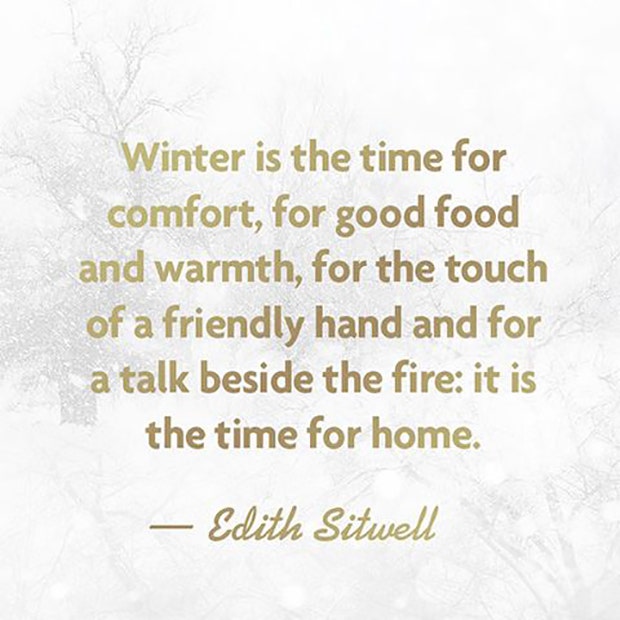 "Winter is the time for comfort, for good food and warmth, for the touch of a friendly hand and for a talk beside the fire: it is a time for home."— Edith Sitwell