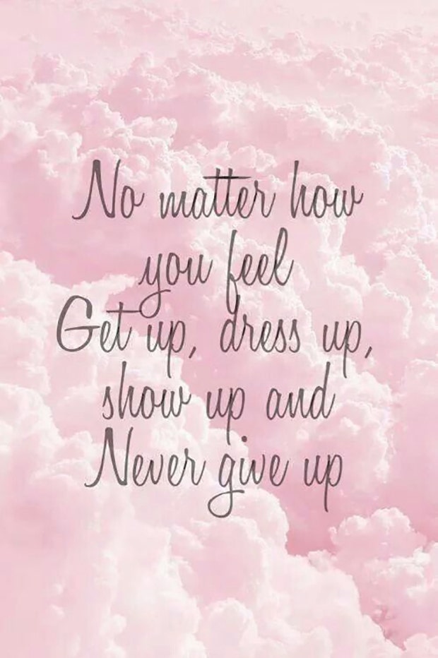 “No matter how you feel, get up, dress up, show up and never give up.” — Unknown