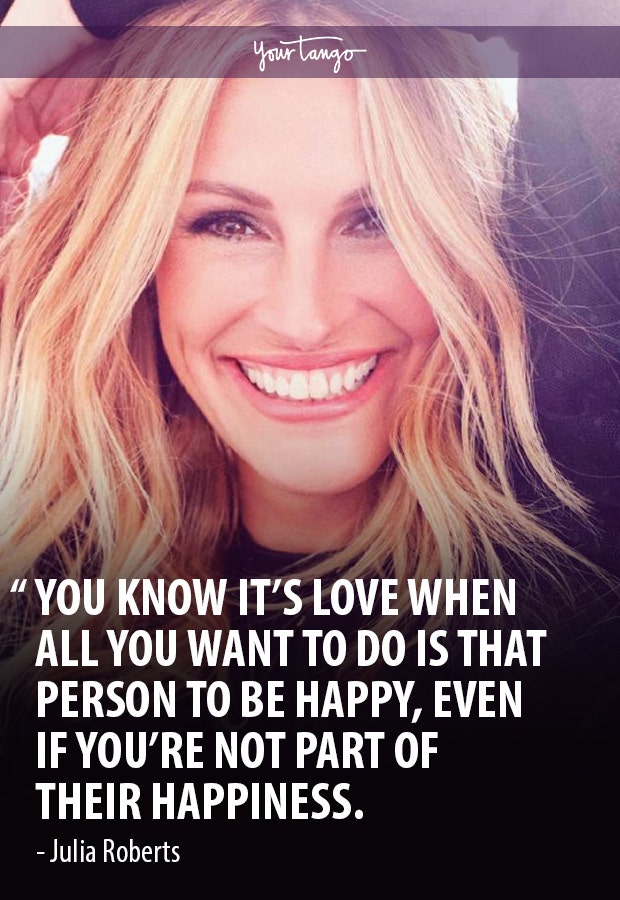 "You know its love when all you want is that person to be happy, even if you're not part of their happiness." — Julia Roberts