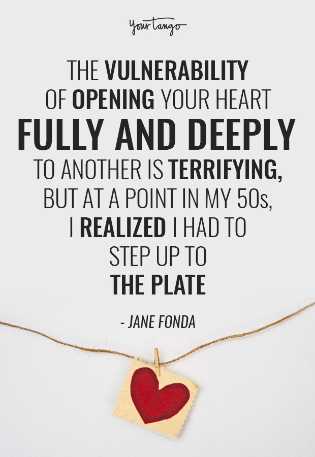 "The vulnerability of opening your heart fully and deeply to another is terrifying, but at a point in my 50s, I realized that I had to step up to the plate." — Jane Fonda