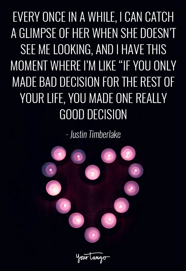 "Every once in a while I can catch a glimpse of her when she doesn’t see me looking, and I have this moment where I’m like, ‘If you only make bad decisions for the rest of your life, you made one really good decision.” — Justin Timberlake