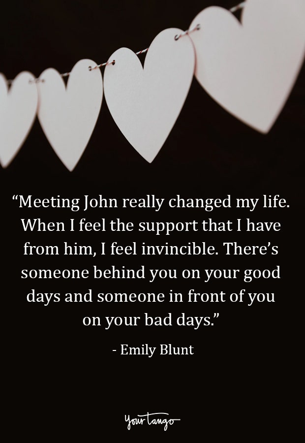 “ Meeting John really changed my life. When I feel the support that I have from him, I feel invincible. There’s someone behind you on your good days and someone in front of you on your bad days.” — Emily Blunt