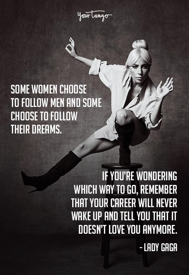 "Some women choose to follow men, and some women choose to follow their dreams. If you're wondering which way to go, remember that your career will never wake up and tell you that it doesn't love you anymore," — Lady Gaga