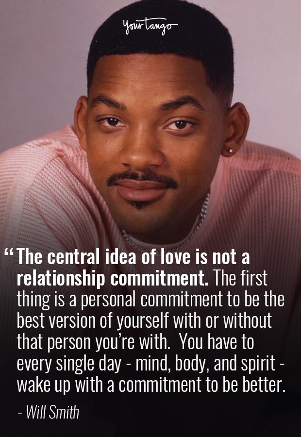 "The central idea of love is not even a relationship commitment, the first thing is a personal commitment to be the best version of yourself with or without that person that you're with. You have to every single day — mind, body, and spirit — wake up with a commitment to be better," — Will Smith