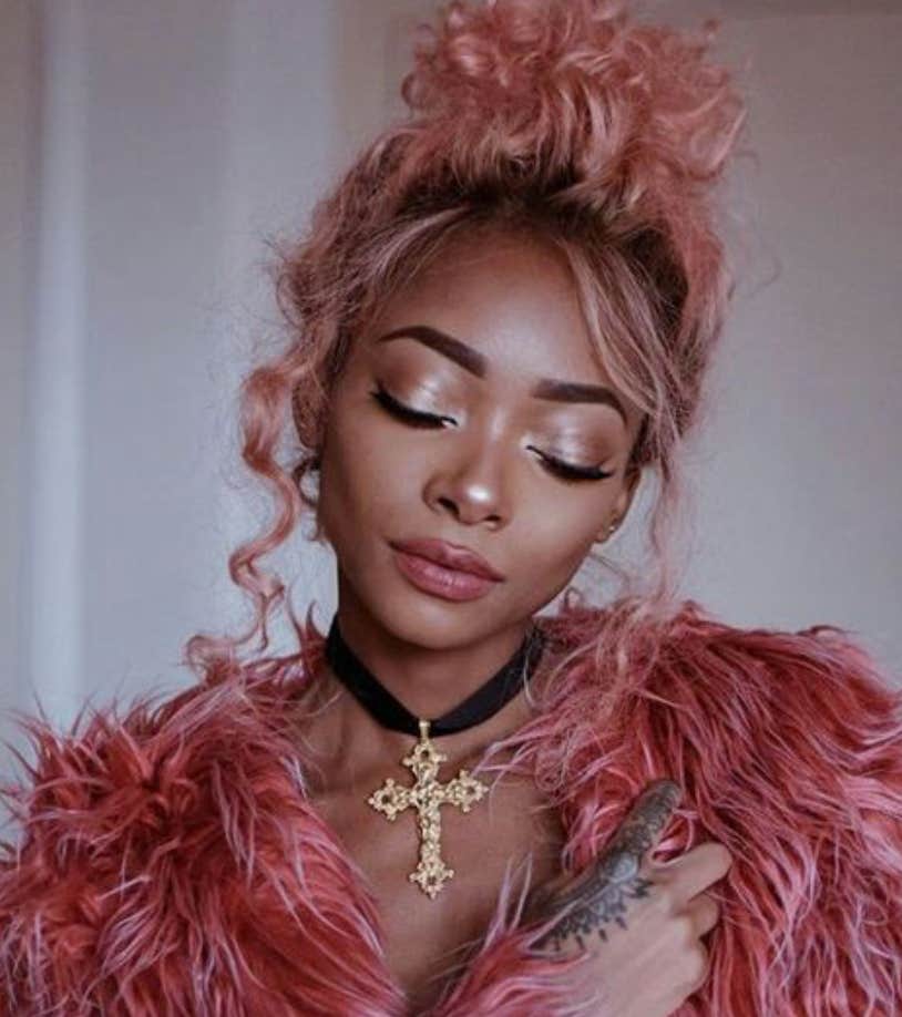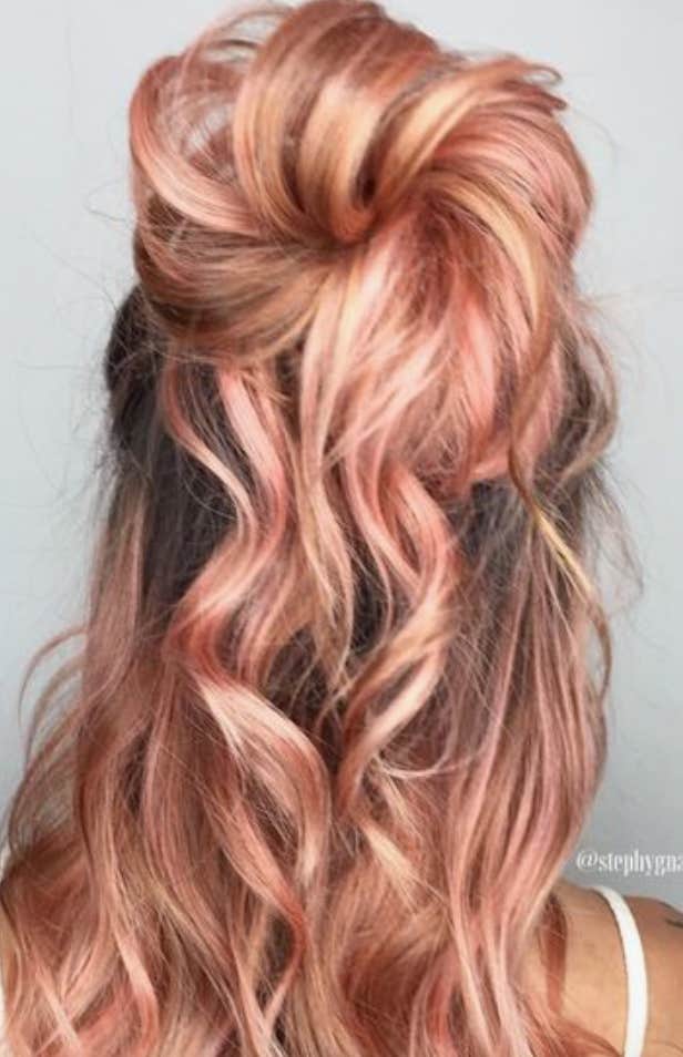 Long hair and she doesn't care! This rose-colored hair cured out acne, and solved world hunger. Talk about goals! Be sure to use some color safe shampoo like this Shea Moisture shampoo to keep that color alive and healthy.